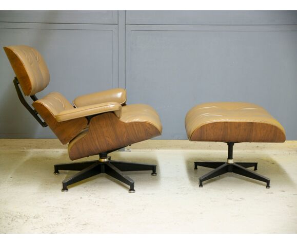 Fauteuil Lounge Chair Et Ottoman Fauve De Charles Ray Eames Herman Miller Selency