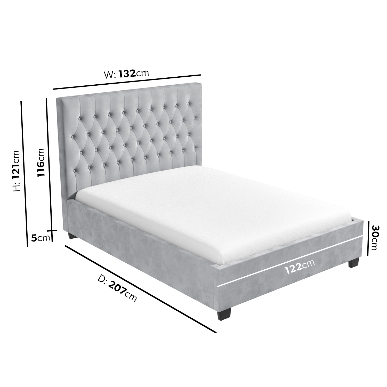 Safina Small Double Ottoman Bed In Silver Grey With Quilted Button Headboard Furniture123