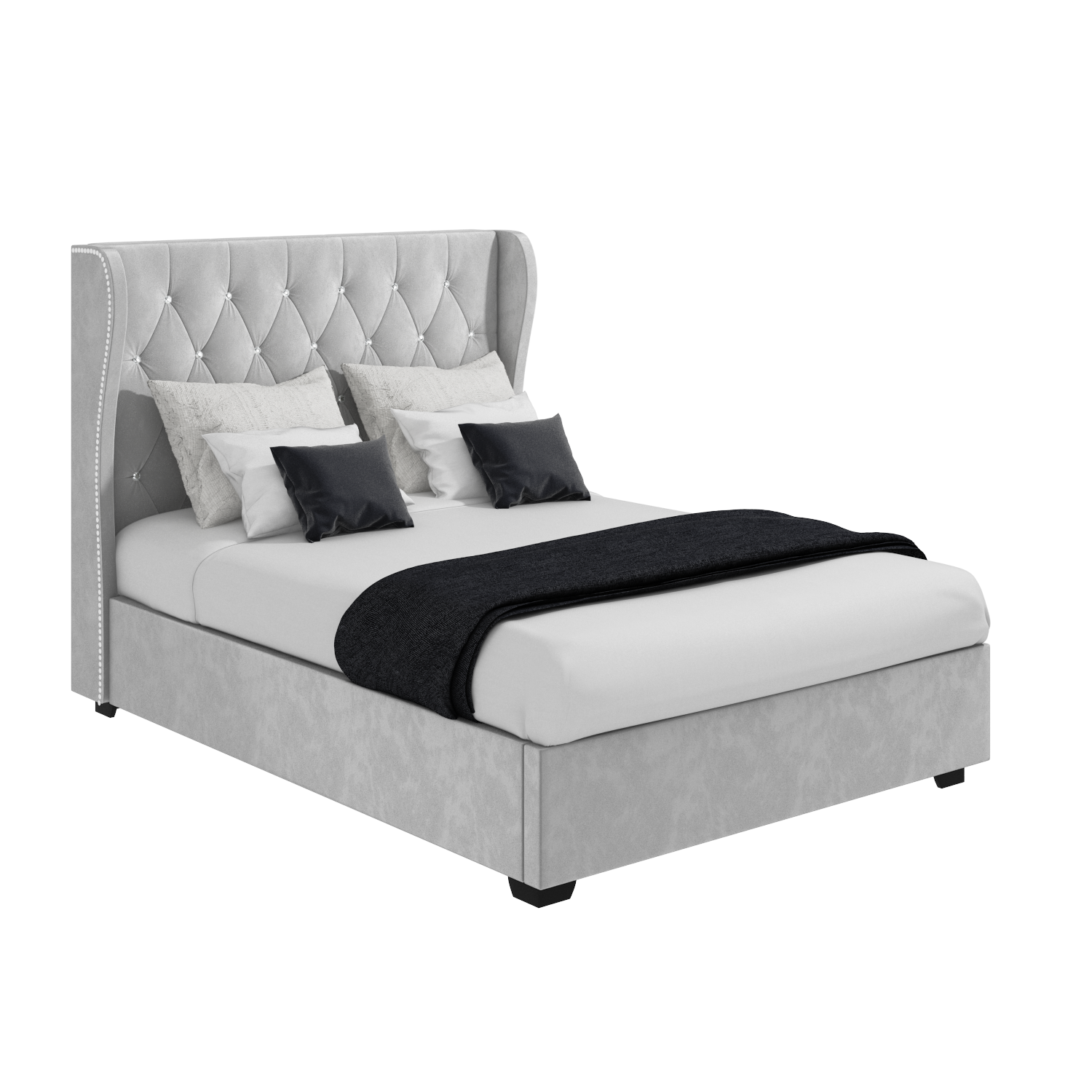 Safina Diamante Wing Back Small Double Ottoman Bed In Silver Grey Velvet Furniture123