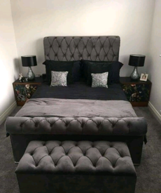 150cm Finsbury Bed Steel Crushed Velvet Beaumont Luxury Upholstered Diamante Grey Fabric Or Crushed Velvet Bed Velvet Bed Velvet Bed Frame Crushed Velvet Bed