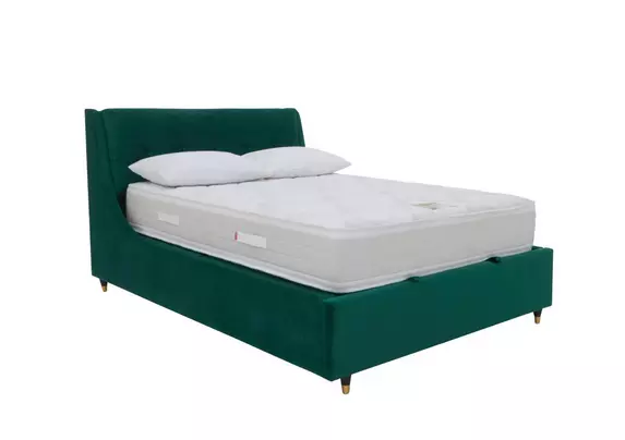 Maddox Wing Back King Size Ottoman Bed In Green Velvet Furniture123