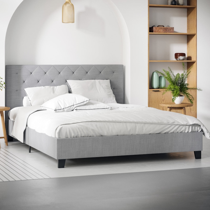 Annonce Parcourez notre large sélection et profitez de la livraison gratuite voir cond. The distinctive cube detailing and the contemporary grey fabric give this bed frame a stylish and minimalist feel. Send me an email when this product is available.